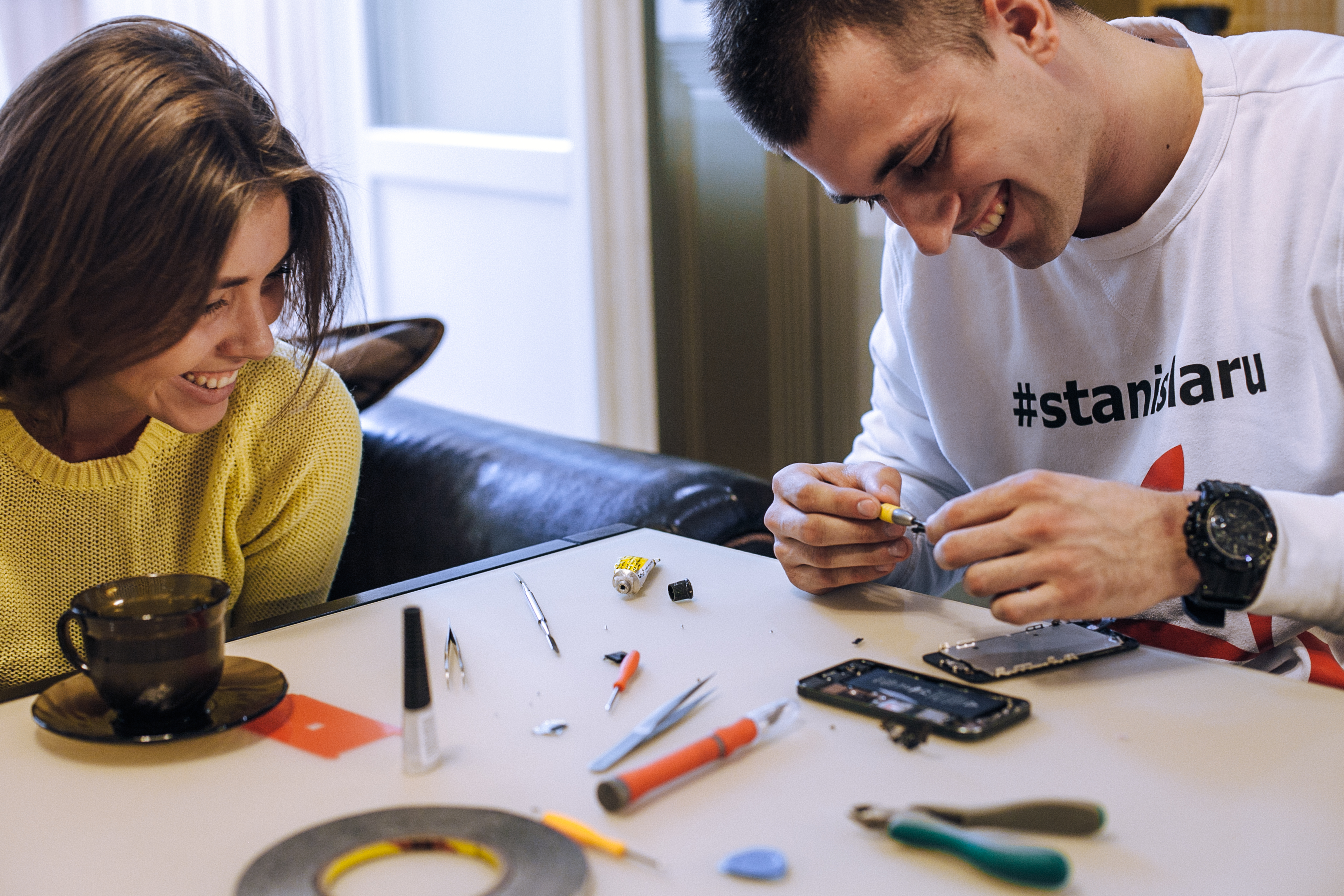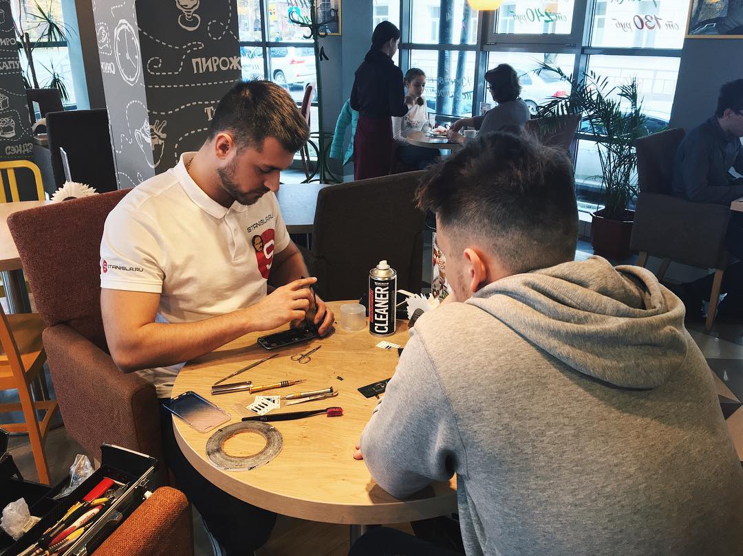 Когда кнопка хоум на моем телефоне упала на пол, и мне пришлось иголкой выходить из приложений, я поняла, что пора идти к этому парню  @stanisla.ru Пока я сидела в кафе, этот волшебник мне и аккумулятор заменил, и кнопку заклеил и почистил все!